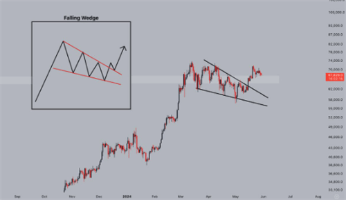 5月31日,根据加密分析师的观察,比特币目前正处于价格突破的边缘,而这将取决于它是否能够攻克之前的历史高点——69000美元的关键阻力位。