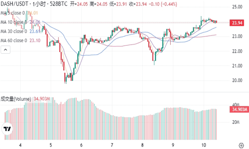 2024年7月9日,Dash币的开盘价为22.7536美元,随后在交易日内达到最高价23.578美元,但最低曾触及20.938美元。最终,该日收盘价定格在22.7907美元,全天交易额达到3074.12万美元,市值保持在2.61亿美元左右。